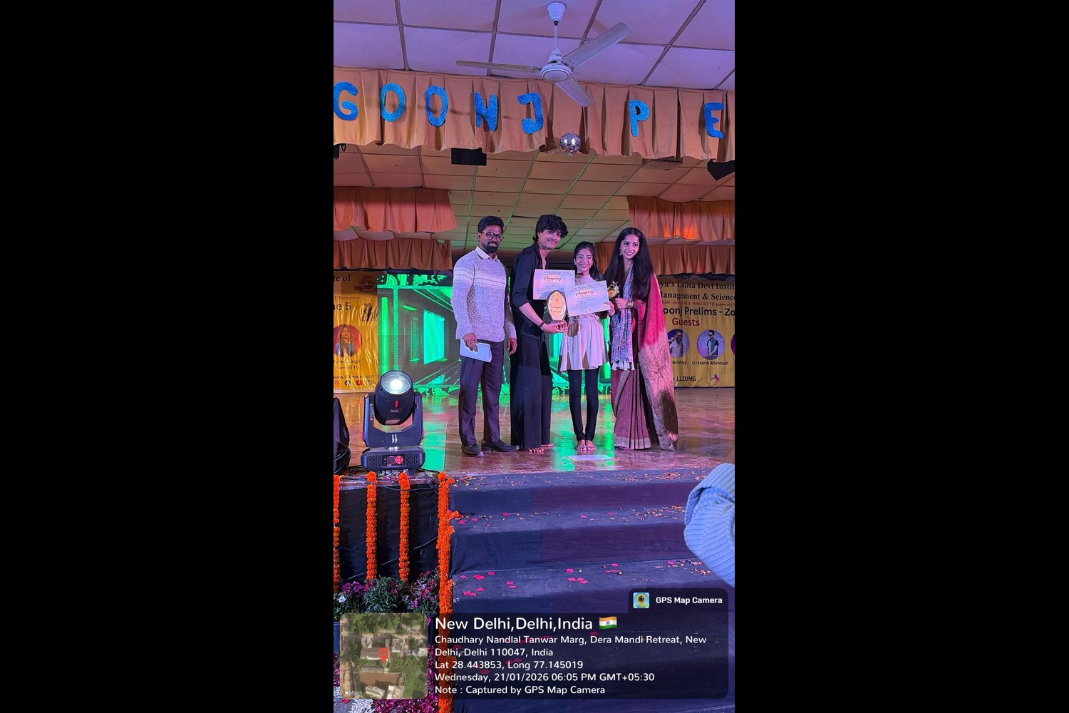JIMS, Vasant Kunj marked an impressive presence at the GGSIPU Anugoonj Prelims, held at Lingaya’s Lalita Devi Institute of Management & Sciences, with three days of high-energy, confident, and award-winning performances across diverse categories.