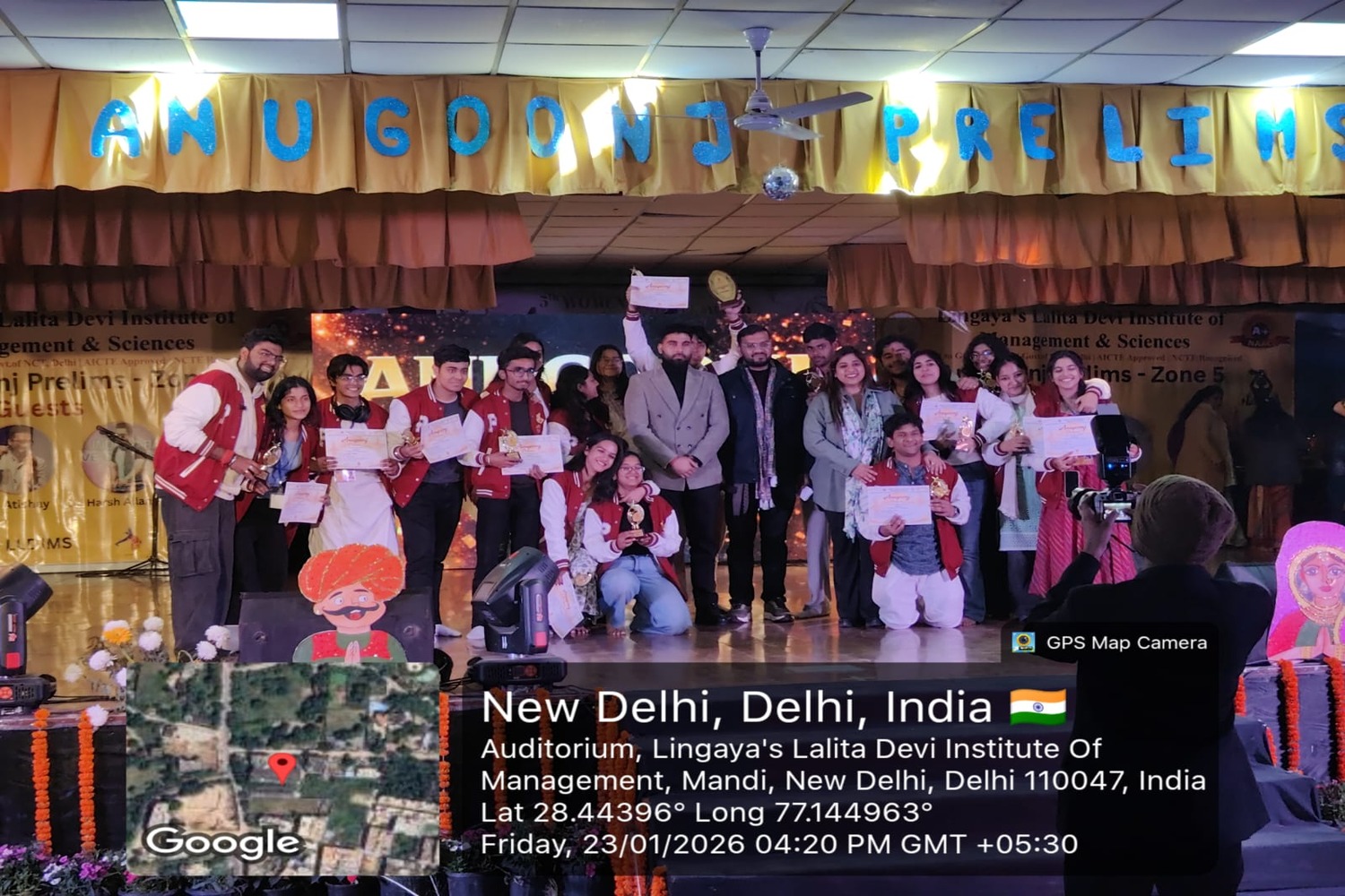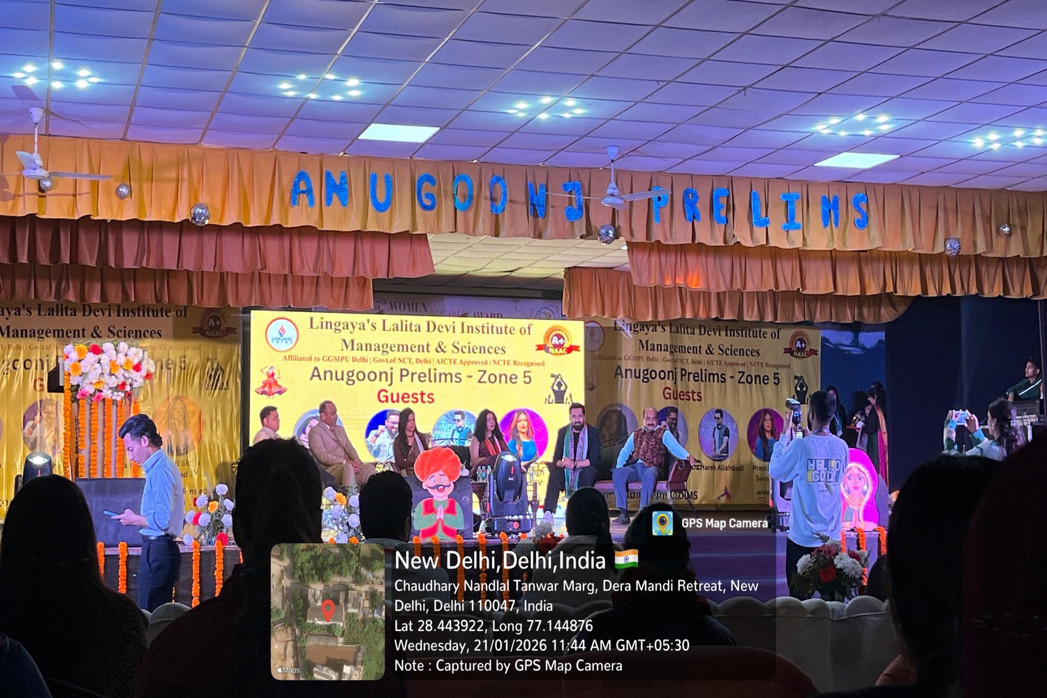 JIMS, Vasant Kunj marked an impressive presence at the GGSIPU Anugoonj Prelims, held at Lingaya’s Lalita Devi Institute of Management & Sciences, with three days of high-energy, confident, and award-winning performances across diverse categories.